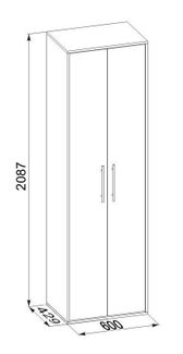 Шкаф для одежды, шириной 600 мм. Шкаф оборудован двустворчатыми дверями. Внутри шкафа расположены две полки и выдвижная вешалка. Изготовлена из высококачественной ЛДСП 16 мм. Отделывается кромкой ПВХ 0.4 мм. Для ВШ-1, ВШ-2.2, ВШ-4, ВШ-6, ВШ-7, ВШ-11 и модульных прихожих.