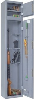 Высота ствола (мм): 1380 Внешн. размеры (ВШГ, мм): 1700350250 Толщина металла (мм): 3 Тип замка: 3 ключевых "ПроСам" (Россия) Объем (л): 150 Взломостойкость: класс НО Цвет: серый Вес (кг): 67