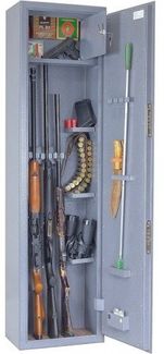 Высота ствола (мм): 1350 Внешн. размеры (ВШГ, мм): 1500400250 Толщина металла (мм): 2 Тип замка: 2 ключевых "ПроСам" (Россия) Объем (л): 150 Взломостойкость: класс НО Цвет: серый Вес (кг): 69