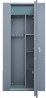 Высота ствола (мм): 1300 Внешн. размеры (ВШГ, мм): 1500680370 Внутр. размеры (ВШГ, мм): 1496675295 Колво стволов: 5 Толщина металла (мм): корпус2, лицевая панель5 Тип замка: 1 ключевой KABA MAUER (Германия) Взломостойкость: класс НО Количество полок: 3 съемных Цвет: темносерый Вес (кг): 106