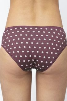 Слипы фиолетового цвета, украшены крупным белым горошком. Сшиты из тонкого, приятного на ощупь хлопка. Благодаря добавлению волокон эластана изделие хорошо тянется и не натирает кожу. Модель вся обшита тонкой резинкой. None