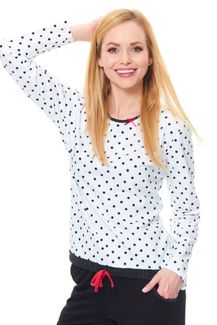 - Пижама с кофтой в горошек (р. S, белый с черным) по выгодной цене 1 523 р. руб.;