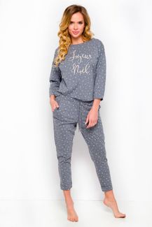 Молодежная пижама Jurata с принтом звезды . Комплект состоит из футболки с длинным рукавом и круглым вырезом горловины, брюк на мягкой резинке. Отличный вариант для сна и домашнего отдыха. В комплекте: футболка, штаны. None