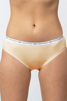 Женские хлопковые трусы-слип в спортивном стиле, с узким поясом. На поясе логотип с брендом. Края обработаны плоской резинкой. Трусы комфортно сидят на теле и не заметны под одеждой. None