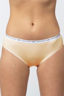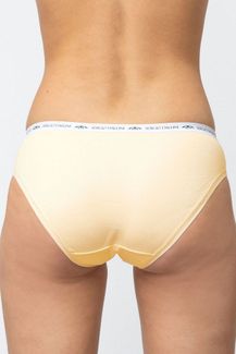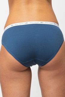 Женские хлопковые трусы-слип в спортивном стиле, с узким поясом. На поясе логотип с брендом. Края обработаны плоской резинкой. Трусы комфортно сидят на теле и не заметны под одеждой. None