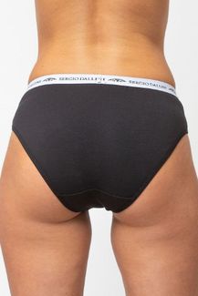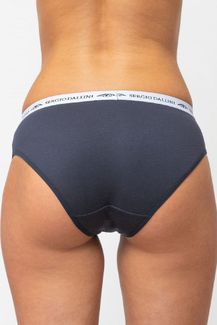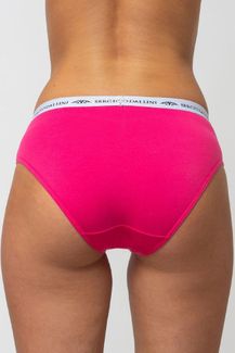 Эффектные трусики-слип в спортивном стиле. Выполнены из хлопка с добавлением эластичных нитей, что обеспечивает исключительную мягкость и терморегуляцию. Широкая нарядная резинка с фирменным логотипом надежно фиксирует трусики на бедрах и служит украшением этой модели. None
