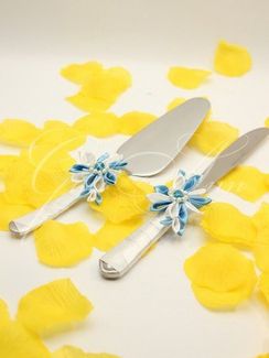 Набор для торта Gilliann Light Breeze CIA020 Нож и лопатка для торта - одни из предметов коллекции Light Breeze. Ручки обтянуты белоснежным атласом, у оснований - великолепные бело-голубые цветы, украшенные жемчугом. Красивый, стильный комплект украсит церемонию разрезания свадебного торта, став неотъемлемой частью этого популярного ритуала, завершающего праздничный ужин. Материалы и декор: нож, лопатка, атлас, декоративные элементы, жемчуг. None