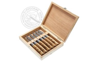 - Набор в деревянной коробке из 6 ножей Opinel №8 Animalia, #001637, нержавеющая сталь, рукоять дуб, гравировка в каталоге Ножи в Москве;