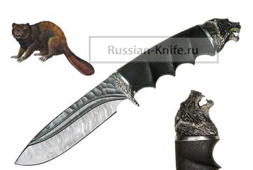 Закажите Нож Бобр-1 (дамасская сталь с долом), голова волчицы у компании Русские ножи в Москве на портале Alloy: