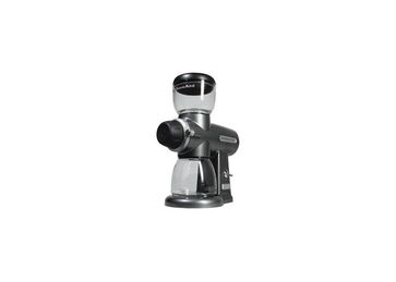 Кофемолка цвета серый металлик имеет регулятор помола со шкалой с 15 делениями. Скорость вращения ножей - 450 об/мин. Специальное косозубое колесо контролирует подачу зерен к жерновам для лучшего помола. Емкость для кофе надежно фиксируется под раздаточным узлом. При вращении ножей минимизируется нагрев кофе при трении, что способствует сохранению его вкуса. Стеклянная емкость для кофе не допускает статического "прилипания" кофе к стенкам.