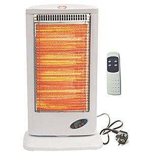 Принцип работы данного обогревателя основан на излучении, подобном солнечному, в результате чего происходит нагрев не воздушного пространства, а поверхности предметов, на которые попадает излучение. Благодаря этой особенности эффективность галогенового обогревателя повышается на 20-40% в сравнении с другими типами обогревателей. Основным нагревательным элементом галогенового обогревателя является галогеновая лампа, излучающая световой поток преимущественно в инфракрасном диапазоне. Данный обогреватель не сжигает кислород и не оказывает отрицательного влияния на здоровье людей. Данный галогеновый обогреватель снабжен встроенным датчиком переворота, который автоматически выключает обогреватель при опрокидывании, предотвращая возникновение пожара.