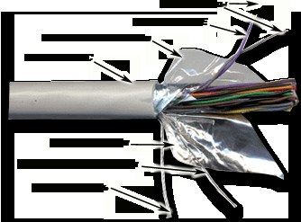 Кабель LAN-3FTP25, 25-парный экранированный кабель 3-й категории может быть использован для передачи данных и телефонных сигналов на частотах до 16 МГц.