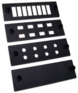 Выпускаются панели на 8 адаптеров ST/FC, 8 адаптеров SC/2LC и 8 адаптеров 2SC/4LC. Адаптерные панели для симплексных и дуплексных адаптеров SC комплектуются специальными винтами для фиксации адаптеров.