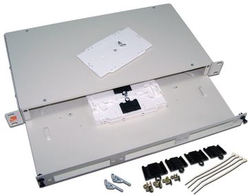 Кросс укомплектован 2-мя сплайс-пластинами и позволяет установить до 3-х адаптерных панелей, при этом ёмкость кросса составит от 6 до 18 портов.