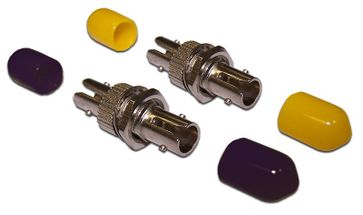 Производятся адаптеры для многомодовых (черные колпачки) и одномодовых (желтые колпачки) коннекторов.