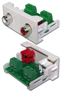 LAN-WA-LP-2RCA-WH Вставка Mosaic 22.5x45 2xRCA Stereo Audio, белая