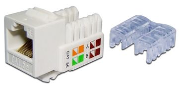 Телекоммуникационный модуль TWT-OK45UTP-110WH , типа Keystone, категория 5Е. На модулях нанесена цветовая маркировка контактов, упрощающая терминацию кабеля. Модули оборудованы врезными контактами 110 типа.