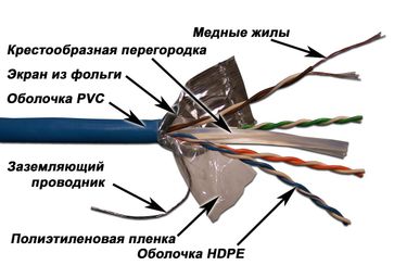 Каждый проводник патч-кордового экранированного кабеля заключен в изоляцию HDPE (полиэтилен высокой плотности). Два проводника, скрученных со специально подобранным шагом, составляют одну витую пару.