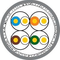 Каждая пара этого кабеля имеет экран из металлической фольги. Все 4 пары защищены внешним экраном оплеткой.