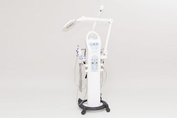 Простой интерфейс управления функциями. Управление функциями с помощью кнопок, которые расположены ниже экрана. Высота: 90 см Диаметр стойки: 56 см Функции: Ультразвуковая терапия (фонофорез) Ультразвуковой пилинг Дарсонваль Брашинг Гальваника Спрей Вакуум Вапоризатор Лампа-лупа на 5 диоптрий. Гарантия: 12 месяцев None
