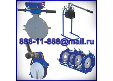 Welding machine for contact butt welding heating element of pipes and fittings made of polyethylene with diameter from 40 to 160 mm, For use in the field, and the construction site. Diameter of welded pipes welding machine: D 40 mm, 50 mm, 63 mm, 75 mm, 90 mm, 110 mm, 125 mm, 140 mm, 160 mm The centralizer chetyrehstennoy. Consists of a reinforced frame on which are mounted two movable clamps (160 mm), which are driven by two hydraulic cylinders and two fixed terminals (160 mm). For connection to the electric pumping station centralizer is equipped with 2 sealed quick couplings.The oil station with electric control unit. Is intended for realization of the process pressure welding and cooling, driving and grows clips. Equipped with: manometer, pressure regulator, three-position joystick, sleeves of a high pressure with tight quick couplings-2. to connect to the centralizer. Pressure range of the hydraulic system from 0 to 60 Bar, 220 V/1.1 kW.Carrying. Highly reliable landing tortuosa drives by a fixing system on the shafts of the device to avoid the accidental movements during operation, the chip out, 220 V/1,2 kW. The heating element. Equipped with a controller that provides the maintenance of the set temperature; non-stick coating working surfaces, connecting cables and a power plug, switch "on/off"temperature adjustable from 180-230ºС,220 V/1 kW.Boxing. For storage and transportation of the heating element and tortoisehg device.Set