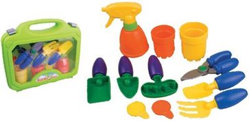 Игра для юного дачника и садовода от 2х лет. Тематический набор в чемодане из важных и очень нужных предметов по уходу за садом - огородом. Малыш с удовольствием будет переносить чемоданчик с необходимыми аксессуарами, помогая взрослым: копать, разрыхлять землю, поливать посаженные растения. С набором "Садовник" у Вашего малыша будет все необходимое для игр в песочнице: лопатки, грабельки, ведерки. Плюс, после игры малыш сможет убрать все предметы в чемодан - теперь они точно не потеряются, а ребенок с детства будет приучаться к порядку. Игрушка выполнена из высококачественного пластика и абсолютно безопасна для Вашего малыша. Порадуйте своего малыша чудесным подарком! Игровой набор отлично подойдет для садово - огородных "работ". Чемоданчик с аксессуарами предназначена для веселой игры на садовом участке. Игра способствуют развитию тактильных ощущений, мелкой и крупной моторики рук ребёнка, а также его двигательной активности. Функциональность игрового набора позволяет надолго занять внимание Вашего непоседы! Здесь есть все, чтобы Ваши любимые маленькие садовники почувствовали себя настоящими помощниками. А Вы будете очень довольны, наблюдая за этим процессом. Поверьте - это бесценно! Проверьте! Давайте задания своим детям и Вы будете приятно удивлены с какой ответственностью они подходят к выполнению садовых обязанностей. Эта игрушечная модель так близка к оригинальному аналогу. Ваш ребенок будет горд своими первыми успехами в освоении этой игрушки, а Вы будете гордиться развитием своего малыша. Поощряйте любознательность детей и Вы будете горды их успехами. Кроме игры, этот набор способен решать серьезные воспитательные задачи, развивает много хороших качеств: внимательность, ответственность и желание помогать, способность думать, считать, желание учиться и развиваться. Оцените это сами! Малыш с великим удовольствием будет работать в саду. Он приучается к труду и аккуратности, наглядно зн
