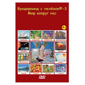 <p>"Вундеркинд с пелёнок-3. Мир вокруг нас" - отличный учебный диск для подрастающего почемучки.</p> <p>В нём есть ответы практически на все вопросы, которые могут возникнуть у вашего ангелочка.</p> <p>Вот примеры некоторых из них: "Зачем нужны деньги?" "Что такое музыка?" "Как делают шоколад?" "Почему летает самолёт?" "Что такое вода и зачем она нужна?".</p> <p>Благодаря тому, что обучающий диск имеет обширную базу знаний, DVD предназначен для детей дошкольного возраста и даже для школьников.</p> <p>По мнению учёных, чем раньше ребёнок начинает приобщаться к процессу обучения, тем быстрее и эффективнее развивается его интеллект.</p> <p>Развитый с ранних лет малыш, будет не только хорошо и успешно учится, но и станет обгонять сверстников по скорости дальнейшего развития.</p> <p>Информация на диске отображается в форме слайдов, разбитых по определённым темам.</p> <p>Слайды яркие, чёткие и наглядные, сопровождаются текстовым и звуковым описанием.</p> <p>Картинка статичная, поэтому детские глазки от небольших сеансов (5-10 мин) не устают.</p> <p>Рекомендуется детям от 4 лет.<br /><br />Бренд: Вундеркинд с пелёнок<br />Материал: Полимер<br />Размер: 0,02х0,19х0,14</p> Наличные, безнал., карты, эл. деньги, юр. лица Возможен самовывоз. Есть доставка.