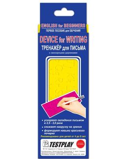 Тренажер для обучения письму от компании TESTPLAY выполнен в виде пластины, на обе стороны которой нанесены буквы и их элементы в виде сенсорных дорожек с рельефным дном. Это обучающее пособие «Тренажер для письма» создано известными специалистами Гладушиными, выпускается на 12 языках, общий тираж превысил 4 млн. экземпляров. Использование тренажера при обучении ускоряет овладение письмом в 2,5-3 раза и сокращает затраты времени по сравнению с технологией изнурительного многократного механического переписывания букв из традиционных прописей в тетрадь. Нагрузка на зрение при письме и общая утомляемость снижаются. Одинаково подходит как для правшей, так и для левшей. Эффект тренажера основан на включении в процессе письма дополнительно к зрительному анализатору сенсорного и слухового (звукового) анализаторов. Буквы воспринимаются ребенком в виде «считываемых» с рельефной дорожки сенсорных и звуковых сигналов. Учебное пособие рекомендовано Министерством образования и науки Украины, Экспертным советом по общему образованию Министерства образования и науки РФ, Министерством образования и науки Республики Беларусь, Министерствами образования и ведущими педагогическими центрами Китая и Индии. Технология обучения письму Буквы обводят ручкой по дорожке пластины 3-4 раза После обводки букв по дорожке ребенок воспроизводит их в тетради 4-5 раз Рекомендовано для обучения письму детей 4-9 лет.