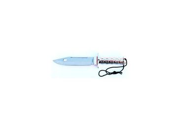 полая металлическая рукоятка, может использоваться как контейнер для мелких предметов, крышка герметично завинчивается, в крышку с внутренней стороны вмонтирован компас, в комплект входит леска, крючки, иголки с нитками, булавка, 2 пуговицы, спички с теркой None