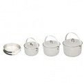 Tatonka Family Cook Set L Набор посуды Характеристики: . Материал: высококачественная нержавеющая сталь Stainless Steel 18/8 . Комплектация: 4 предмета (3 кастрюли + 1 сковорода) . Конструкция: боковые дугообразные ручки . Чехол-сумка входит в комплект поставки . Высокая прочность, надежность и долговечность . Объемы: 6 л / 4,5 л / 3,1 л . Артикул: 4024.000 Размеры (Д.В.): 26 x 15 см / 23 x 14 см / 21 x 12,5 см / 26 x 4,5 см Вес: 855 г / 710 г / 575 г / 375 г (2555 г) Описание: Походный кухонный набор посуды, удобен для семейного отдыха. Три кастрюли, одна сковородка, три разных размера. Чехол-сумка прилагается. Сохраняет привлекательный внешний вид даже после длительной эксплуатации. None Есть доставка.