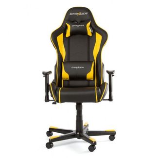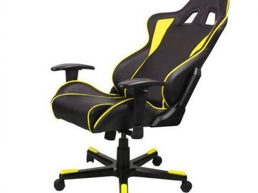 DXRacer OH/FE08/NY - эргономичное компьютерное кресло в спортивном дизайне. Обивка выполнена из эко-кожи в черном цвете с желтыми вставками.