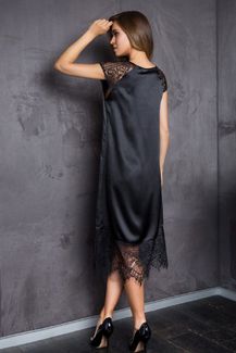 Женская длинная домашняя сорочка из однотонного сатина. Плечи и низ изделия декорированы тонким кружевом. На полочке имеются рельефы для улучшенной посадки по груди. None