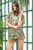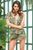 Стильный пляжный костюм с шортами выполнен из принтованного шифона. Верх комплекта выполнен в виде шифонового жакета-халата, с короткими рукавами и капюшоном. Жакет распашной, на линии талии кулиска с завязками и кисточками на концах. Края рукавов украшены принтованными манжетами. Шорты спереди выполнены внахлест, в поясе резинка с завязками. В комплекте: жакет-халат и шорты. None
