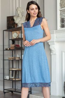 Элегантная домашняя сорочка с кружевом (р. S, голубой)