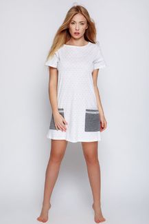 Хлопковая сорочка Lou в мелкий горох (р. S, белый с серым)