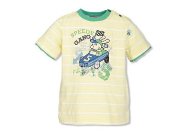 Легкая светлая хлопчатобумажная футболка с веселой картинкой на груди обязательно придется по душе малышу. Застежка на кнопках на левом плече облегчает процесс надевания через голову (на размерах до 86 включительно). Рукав короткий, ровный. Манжет зеленого цвета вставлен под рукав и слегка выдвинут. None Страна производства: Польша Есть доставка.