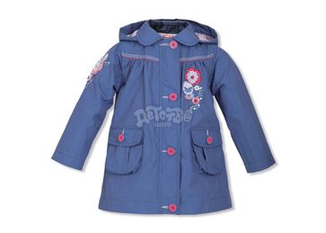 Водонепроницаемая демисезонная ветровка для девочки свободного покроя. Классический воротник, капюшон отстегивается. Куртка застегивается на молнию и пуговицы, такие же пуговицы застегивают 2 кармана. На рукаве и груди нашиты рисунки. Рукав ровный, прямой. None Страна производства: Польша Есть доставка.