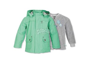 Водонепроницаемая куртка для мальчика, в комплекте кофта и ветровка. Ветровка на подкладке из 100% хлопка. Капюшон отстегивается, воротник стоечкой. Имеется карман на груди и два больших кармана по бокам. Кофта на молнии, и ее маскирует вставка на кнопках. None Страна производства: Польша Есть доставка.
