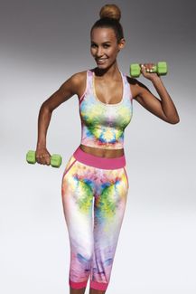 Разноцветная майка для фитнеса Exotic top 30 200 den изготовлена из полностью непрозрачного, эластичного, корректирующего фигуру материала. Благодаря применению особой химической модификации структуры волокон фирмы ARCHROMA, материал имеет улучшенные свойства пропускания воздуха и отвода влаги с тела. Плотность - 200 ден. None