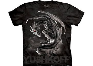 Футболка с изображением дракона и приближающегося к нему рыцаря