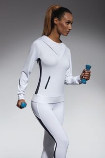 Толстовка с капюшоном для фитнеса свободного кроя Imagin blouse изготовлена из полностью непрозрачного, эластичного, корректирующего фигуру материала. Благодаря применению особой химической модификации структуры волокон фирмы ARCHROMA, материал имеет улучшенные свойства пропускания воздуха и отвода влаги с тела. Плотность - 200 ден. None