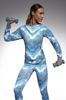 Толстовка с капюшоном для фитнеса свободного кроя Energy blouse изготовлена из полностью непрозрачного, эластичного, корректирующего фигуру материала. Благодаря применению особой химической модификации структуры волокон фирмы ARCHROMA, материал имеет улучшенные свойства пропускания воздуха и отвода влаги с тела. Плотность - 200 ден. None