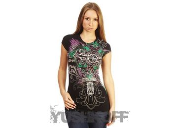 Футболка с изображеннием разлиных зелено-розового узора (черный цвет)