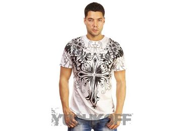 Футболка с изображеннием креста с крыльями (белого цвета).