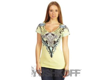 Футболка с изображеннием крестообразного узора (желтый цвет+ стразы)