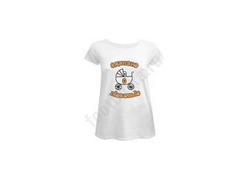 Модель футболки на фото: Футболка для беременных. Силуэт "трапеция" (расширенная к низу передняя часть футболки для свободы животика)