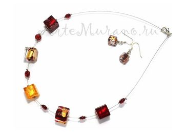 Красные, бордовые и золотые кубики из муранского стекла. Ручная работа. Италия None