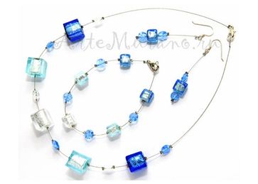 Синие, голубые и серебряные бусины в форме кубика на струне. Ручная работа. Италия None