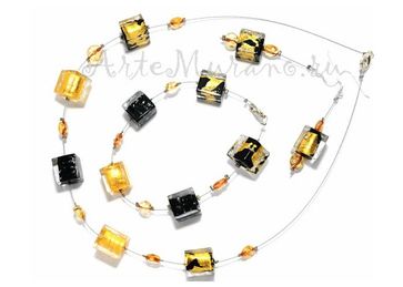 Черные и золотые кубики из муранского стекла на струне. Ручная работа. Италия None