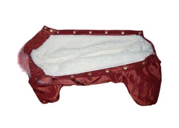 Основной материал:тафта Подкладка:флис Отделка:песец крашенный, бархатная лента Застежка:кнопки на спине Дополнительно:резинки на ножках. Отличный и не маркий комбинезон.Выполнен из легкой тафты, утепленной при помощи флиса. Воротник отделан крашеным песцом. На одежде присутствием отделка в виде бархатной ленты. На лапках закрепляется резинками.